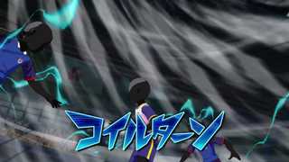 鋭いキックで 相手の周りに竜巻を起こしボールもろとも上空に吹き飛ばす。