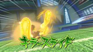 空間を切り裂いて ボールを吸い込みシュートの威力を落とす 蹴りが光る技。