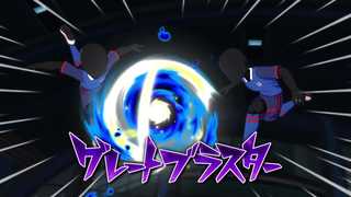両腕で構えた銃に 赤と青のオーラを充填しエネルギー弾を放つ 暴力的なシュート。