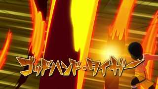 3人のパワーを1つに集めて解き放つ究極奥義の巨大なゴッドハンド。